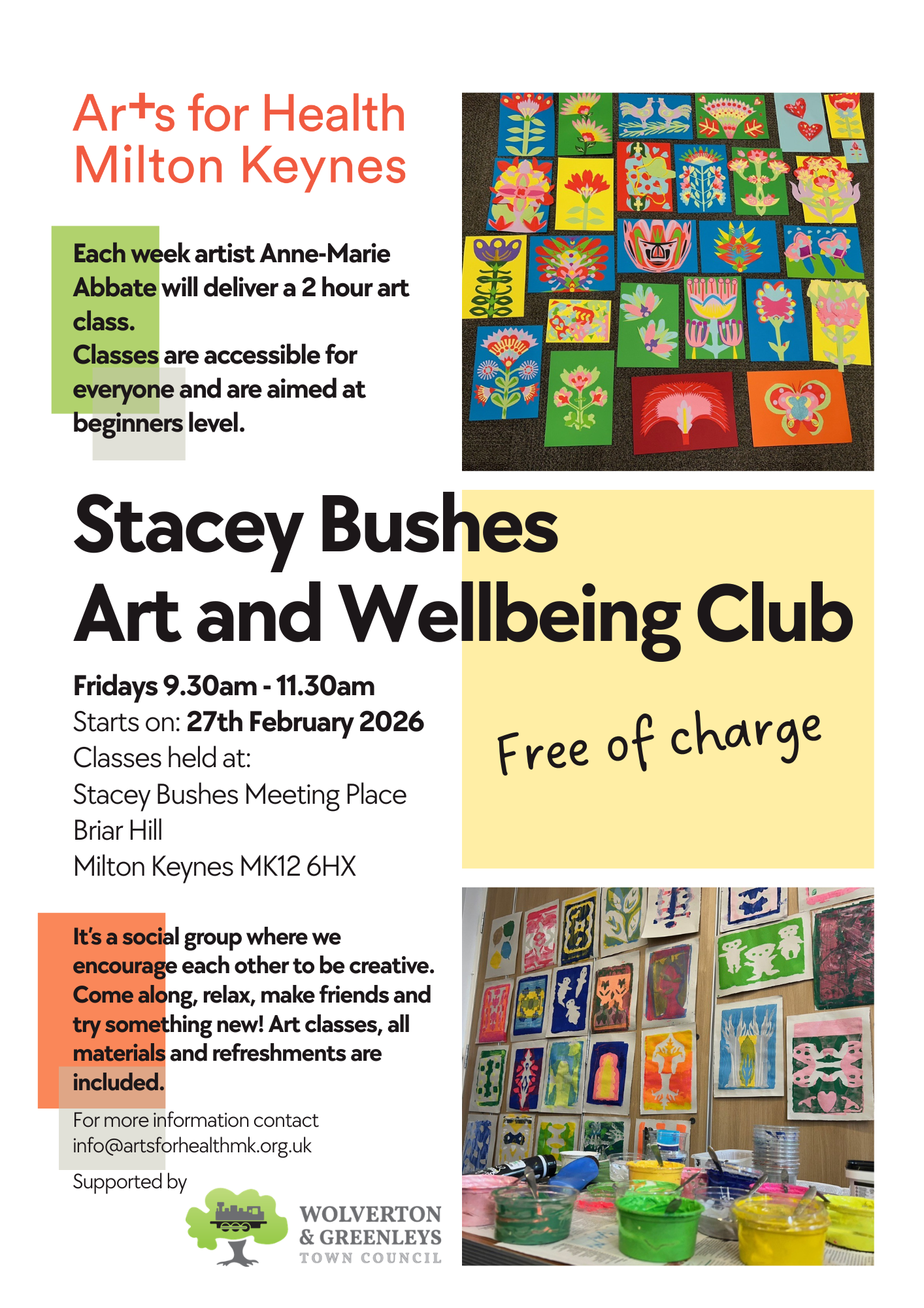 - Please contact us on info@artsforhealthmk.org.uk or 01908 996124 for more information.