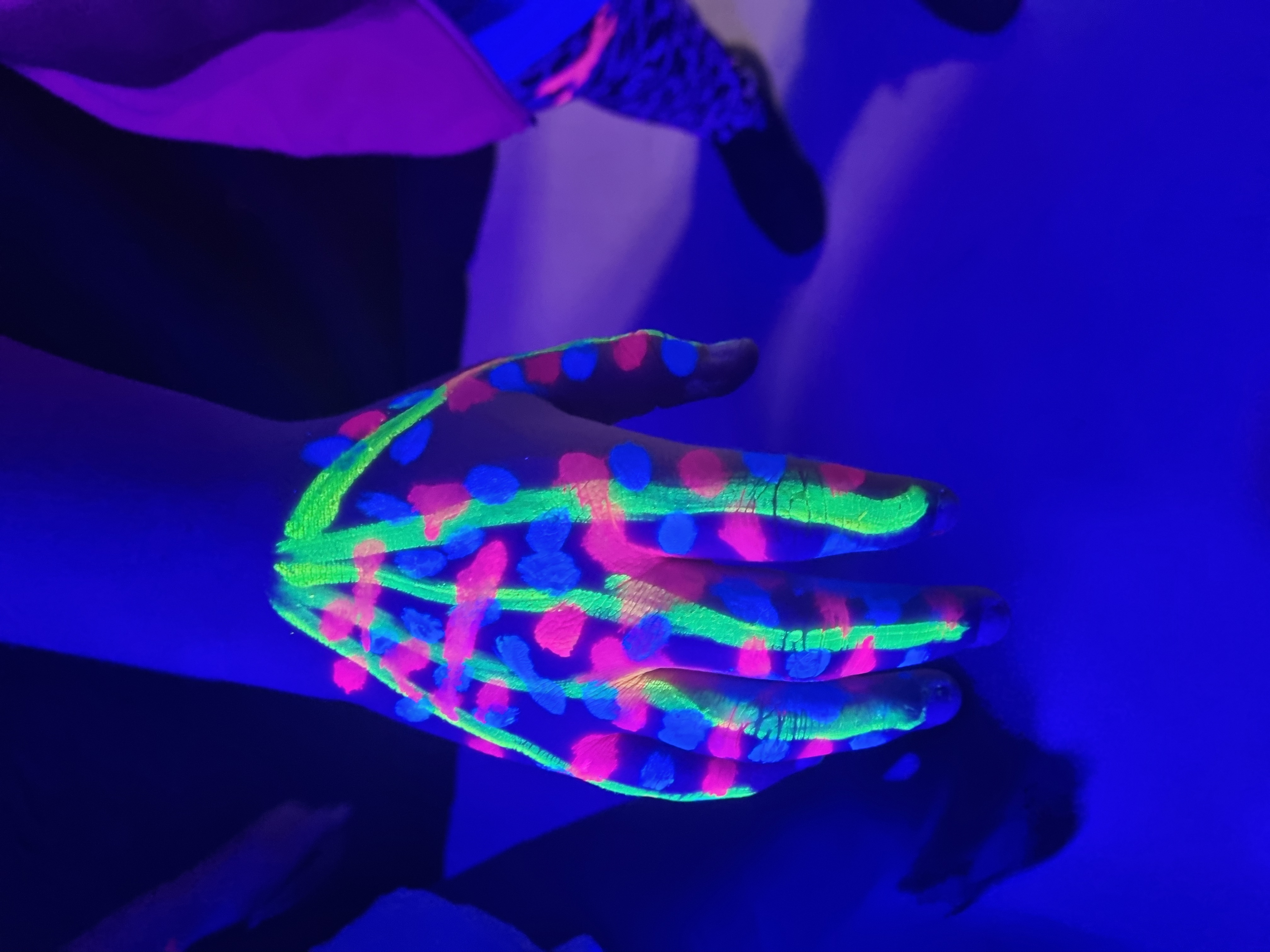 Sophia: Used body art makeup to create realistic SFX gore makeup including UV glow body painting and we also experimented with painting our own spooky Halloween looks.