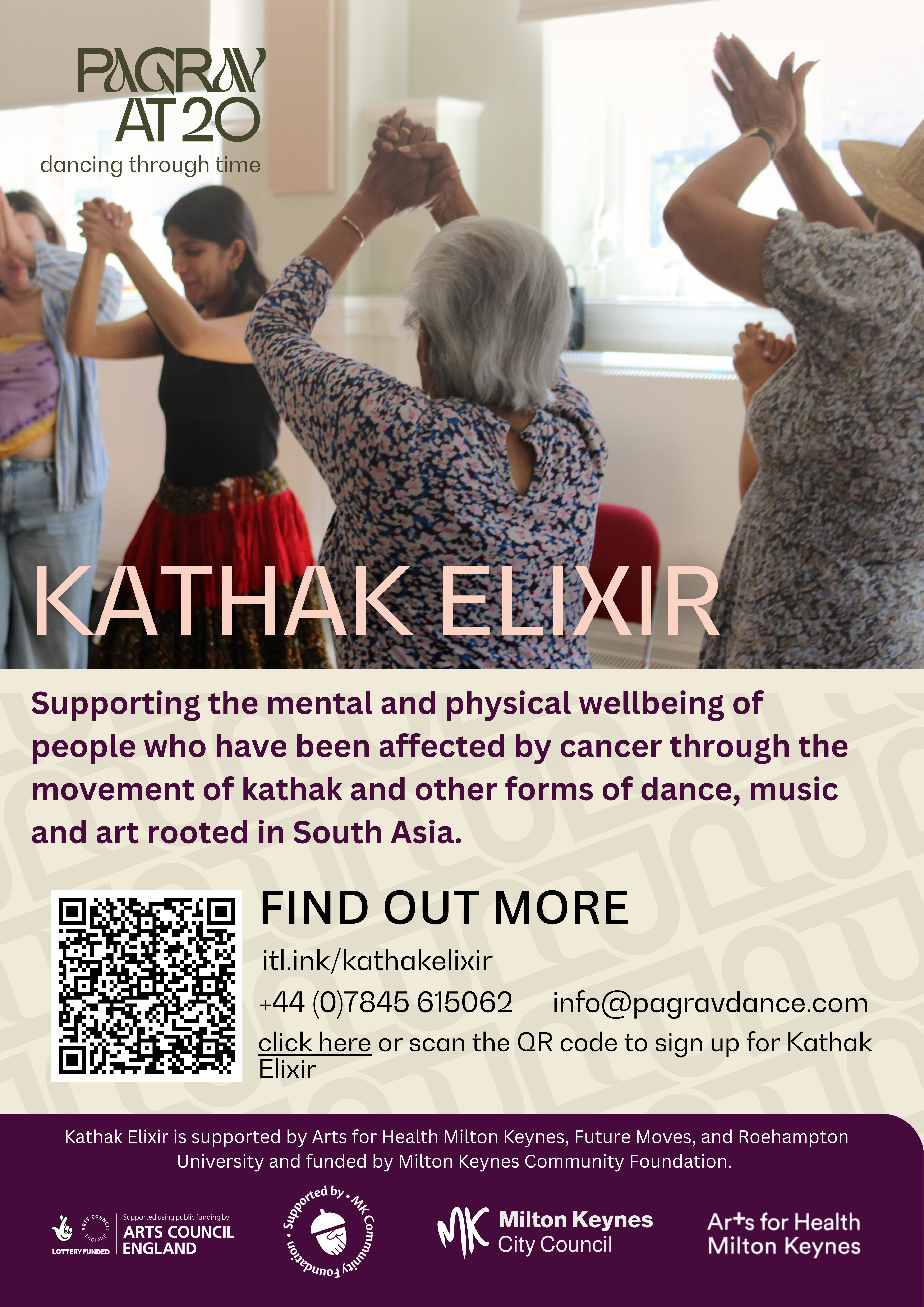 Kathak Elixir is supported by Arts for Health Milton Keynes, Future Moves, and Roehampton University funded by Milton Keynes Community Foundation.